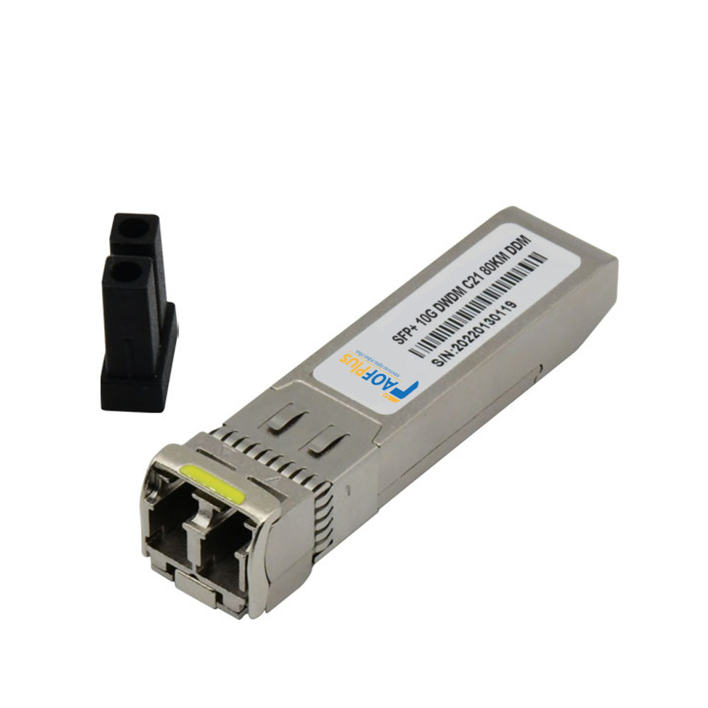 Various brands-compatible avaliable (Cisco, ARISTA, FiberHome, ZTE or etc.) DWDM 10G SFP+ optical transceiver module, range from C17 to C61 optional, tailored for extensive fiber optic networks. This fiber optical transceiver module operates within a wavelength range of 1563.86-1528.77nm and supports seamless data transmission over single-mode fiber spans of up to 80km. Equipped with duplex LC/UPC interface, the SFP+ optical module ensures reliable and high-speed optical signaling. Perfect for demanding network applications requiring extended reach and robust performance, this transceiver seamlessly integrates with popular brands' systems to enhance network capabilities.