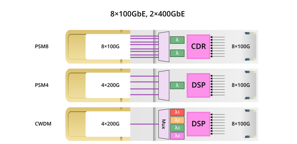 800G DR8, 800G PSM8 and 800G 2xDR4